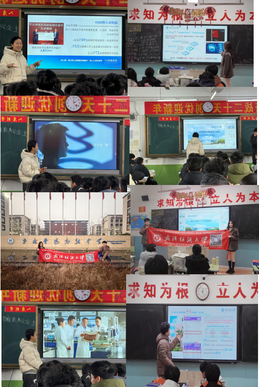 1.入校筹备与前期沟通:为保证宣讲活动有序开展,团队负责人吴佳欣与广水一中老师进行接洽,就宣讲时间、场地安排及参与学生范围达成共识。团队成员杨春瑞协同准备宣讲内容,结合宣讲班级学生特点(物化生、历政生)调整讲解重点,确保活动准备充分、流程规范。