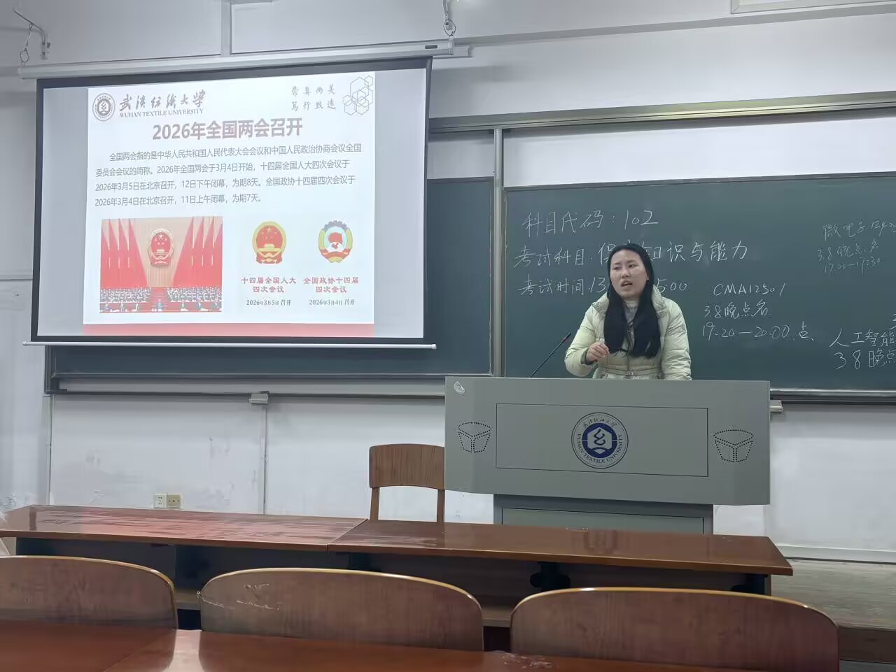 3月8日晚,学院全体辅导员、班主任通过线下方式,深入各班级组织进行晚点名,开展“聚焦两会明方向,挺膺担当向未来”主题班会,引导学生关注国家大事、领会两会精神学。