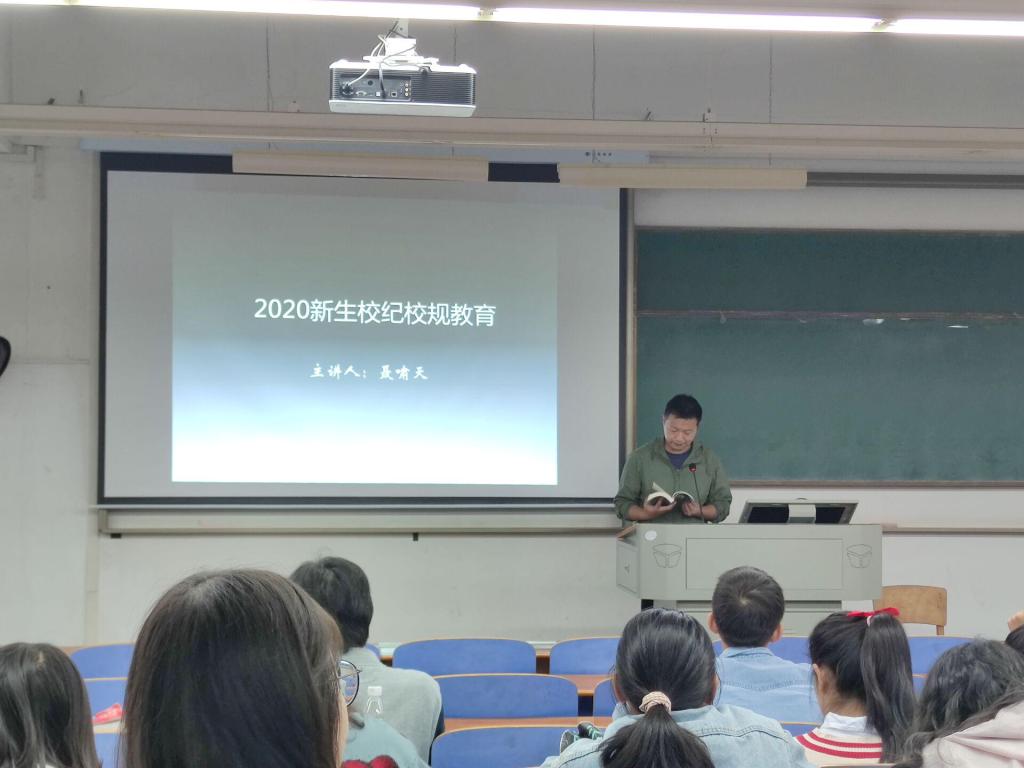 10月3日上午,成人文学 新生入学系列教育在崇志楼T102继续开展,学院辅导员卫周瑶和聂啸天分别进行了“奖励资助教育”和“校级校规教育”的授课。