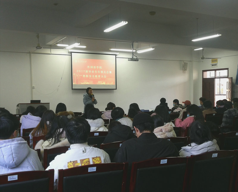 针对学生离校和假期安全管理,于近期先后召开各年级安全教育主题大会,辅导员卫周瑶、聂啸天分别主持所在年级大会。