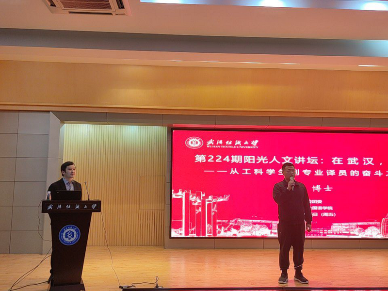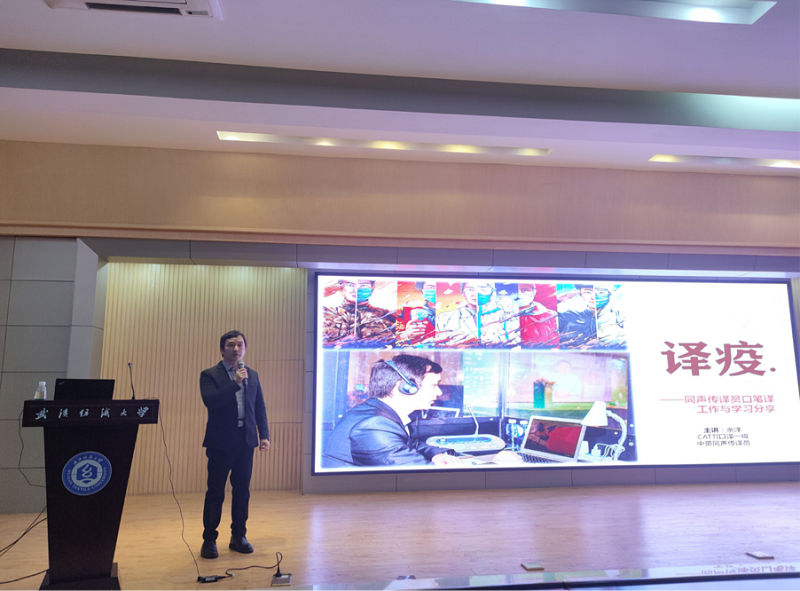邀请资深口译员、武汉大学教师余洋作为主讲嘉宾,在阳光校区国际学术报告厅举办了以“在武汉,译疫——从工科学生到专业译员的奋斗之路”为主题的阳光人文讲坛。此次活动由成人文学