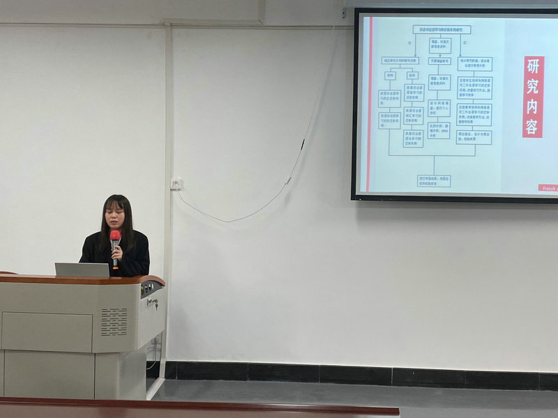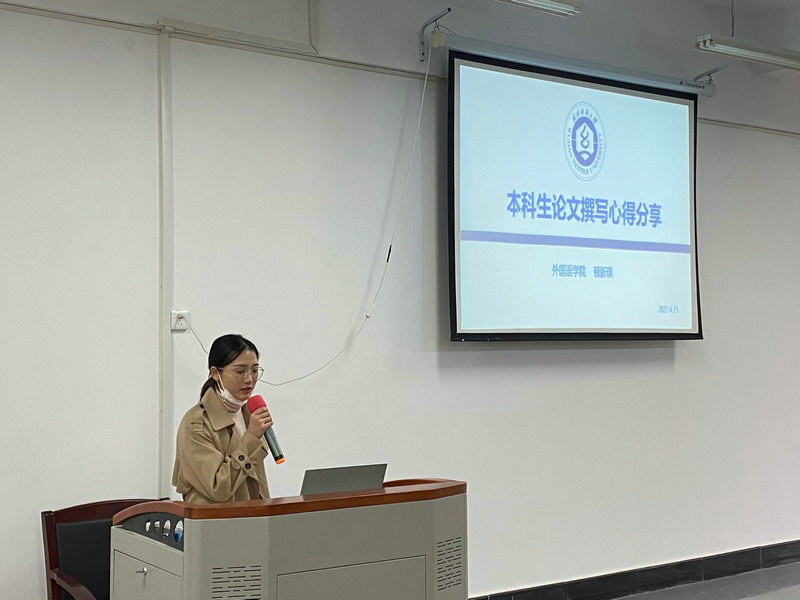 紧接着,论坛第一讲正式开始,本次邀请了大四学生赵帆和MTI研究生顿新琪进行本科阶段学术论文撰写的分享。赵帆同学介绍了她在研究《英语对二外法语的迁移作用》时用到的方法和经验,顿新琪则分享了她在课题《基于语料库的谷歌和有道机器翻译文本质量对比研究》的心得和所查阅的资料。在场同学积极互动提问,活动最后在热烈的气氛下圆满结束。