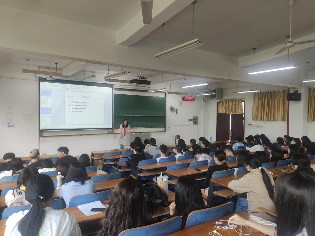 首先,本次大会为毕业年级学生解答即将毕业的各种问题。第一,卫周瑶老师就毕业生离校工作进行了详细说明,倡导文明毕业,确保毕业生文明、愉快、安全地离校。第二,为使毕业生明确党组织关系转移、报到证和档案转接这两个重点工作,卫老师制作了图文并茂的PPT课件,重点讲解、详细解读有关问题,消除了毕业生们的疑惑,为其带来极大便利。第三,卫周瑶老师还介绍了生源地信息核对以及信用助学贷款工作,督促毕业生们按时核对、统计信息。第四,应卫周瑶老师的邀请,学院新进辅导员甘新敏老师结合自身经历,为毕业生们带来了关于考研就业的宝贵经验。