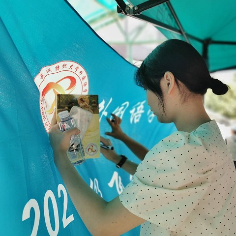 “签上这个名字,你就在外院打下了第一个烙印!”——新同学在2021级专属迎新旗帜上签署姓名
