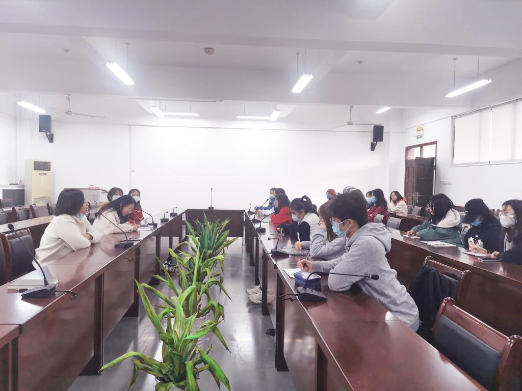 在崇文楼303会议室开展心理委员培训会,本次会议由辅导员卫周瑶主讲,学院党委副书记王芳、辅导员周曦及学院全体心理委员出席会议。