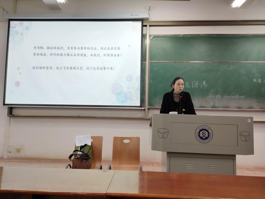 于12月12日下午在崇志楼119教室举办了主题为“扎根基层放飞青春梦想,服务西部书写人生华章”团课。全体21级新生参加,辅导员甘新敏主讲。