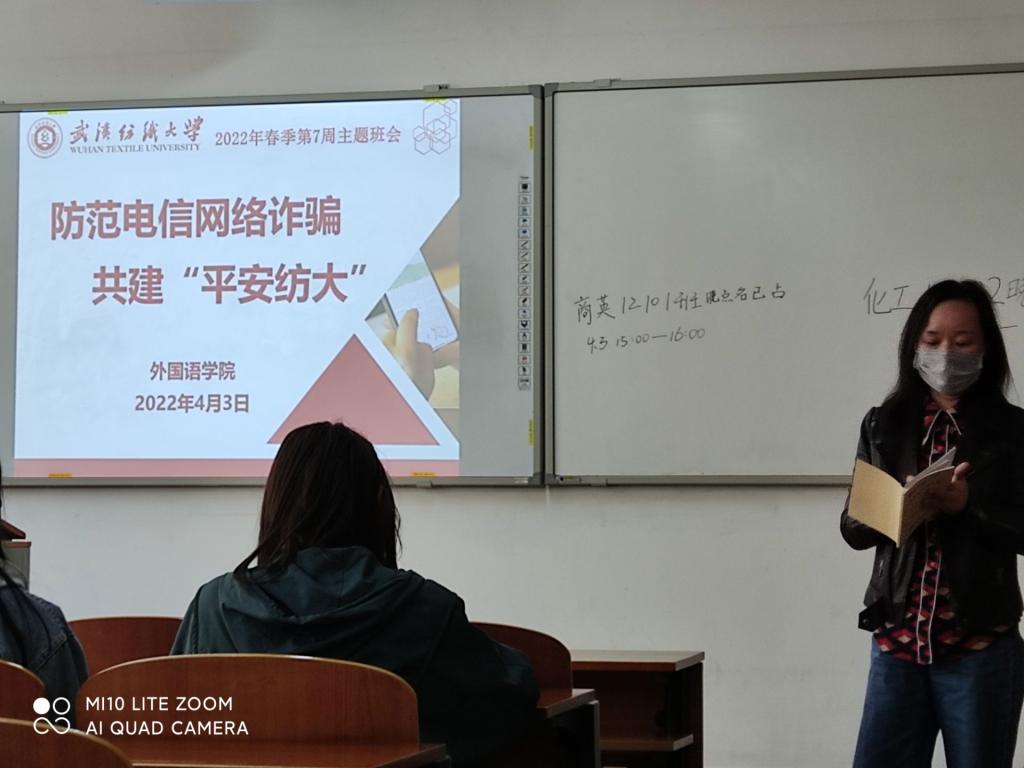 于4月3日下午3点开展防范电信诈骗主题班会,外语学院全体班主任和学生一起开展了此次主题班会。