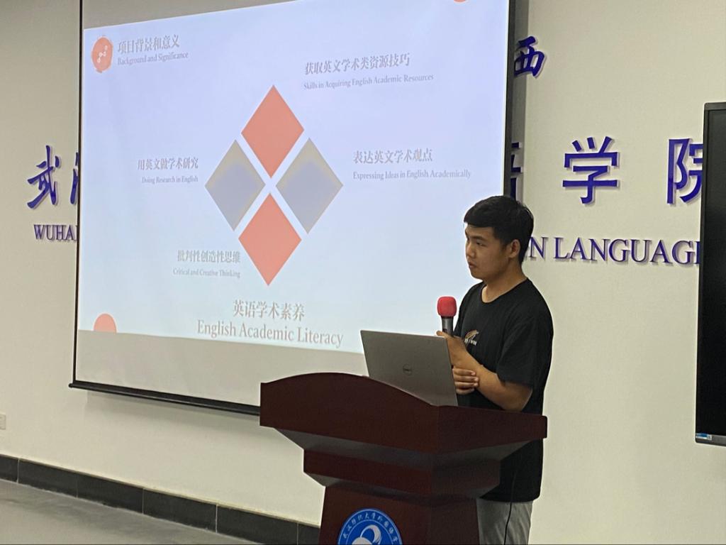 首先进行展示的,是来自英语专业的蔡文斌同学,他的展示项目是《非英语专业英语学术素养调查研究》。蔡文斌同学基于对我校非英语专业学生英语学习现状的调查研究,运用本专业的专业性学科知识,对数据进行了删选、分析与理解,基于非英语专业学生学习英语的需求,为他们提供了有效的解决方法。