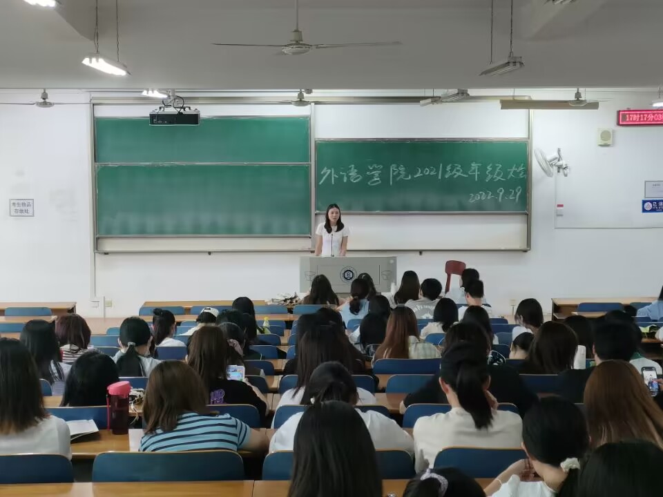于崇文楼120教室召开国家奖助学金政策宣讲会,辅导员聂啸天、甘新敏分别给各个年级进行了经济困难等级认定、奖助学政策宣讲。