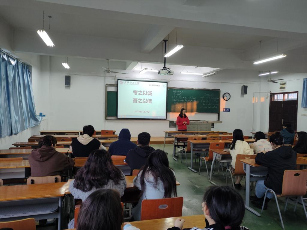 为了全面贯彻落实学校有关考试的要求,进一步严肃考风考纪、净化考试环境,形成良好的诚信之风,培养学生的诚信品德,营造公平、公正、诚信的考试氛围,12月20日,成人文学