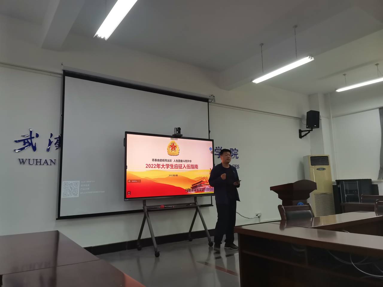 在崇文楼303会议室开展“投身绿色军旅,筑梦美好青春”征兵入伍宣传讲座。讲座由学院辅导员聂啸天主讲,学院2018级全体学生参会。