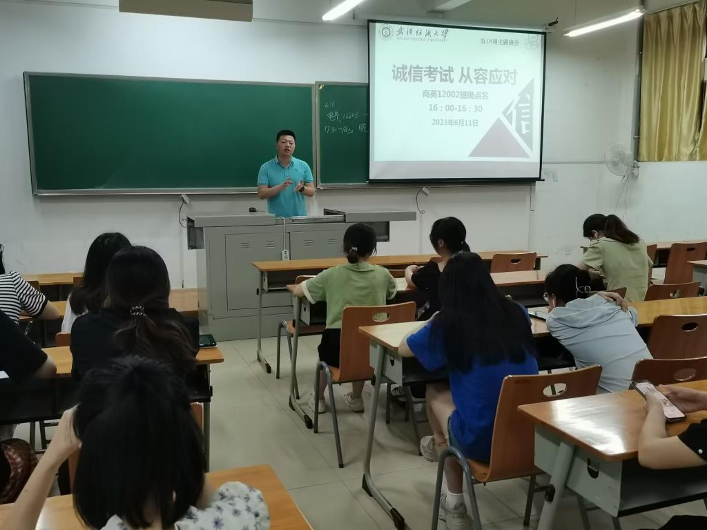 为营造良好的学习氛围和考风,6月11日晚,学院全体辅导员、班主任通过线下方式,深入各班级组织召开晚点名,开展“诚信考试 从容应对”主题班会,学院全体本科生、研究生参加班会。