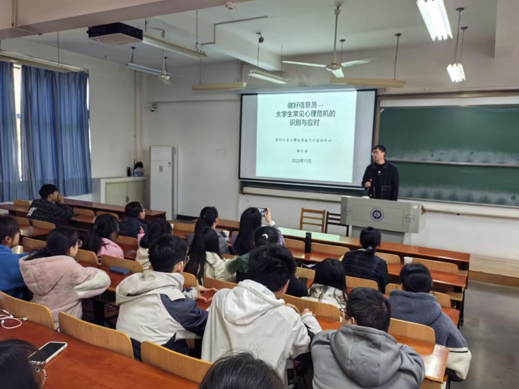 黄老师以“做好信息员—大学生常见心理危机的识别与应对”为题,分别从抑郁症的症状、及时报告心理危机的重要性、其他心理异常疾病、心理危机事件的诱因、遇到危机怎么做五个方面的内容,详细系统的介绍了心理危机的识别和应对。