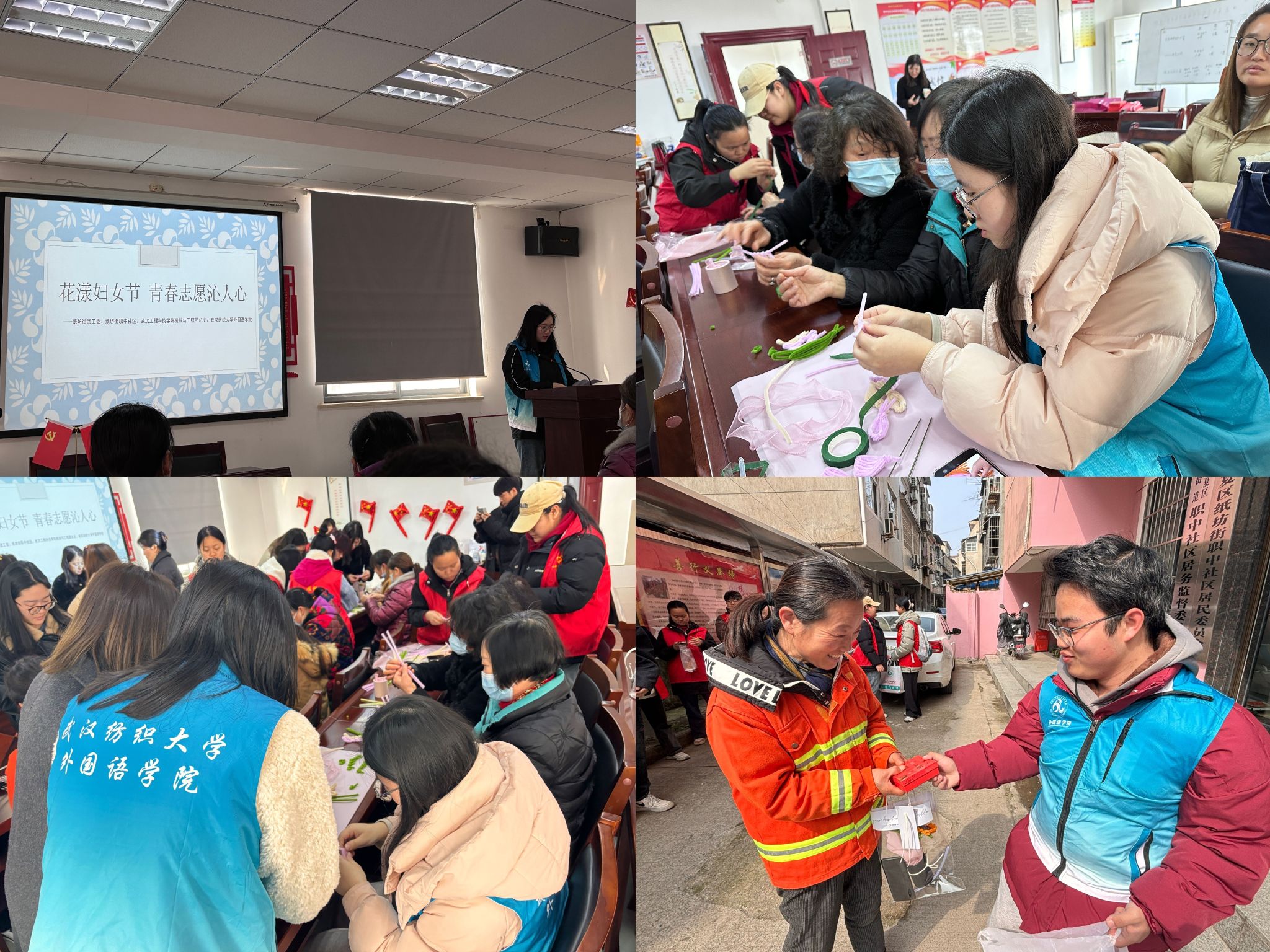 志愿者前往江夏区职中社区党员群众服务中心开展了以“花漾妇女节 青春志愿沁人心”为主题的妇女节庆祝活动,参与此次活动的还有职中社区工作人员、居民代表以及武汉工程科技学院的志愿者们。