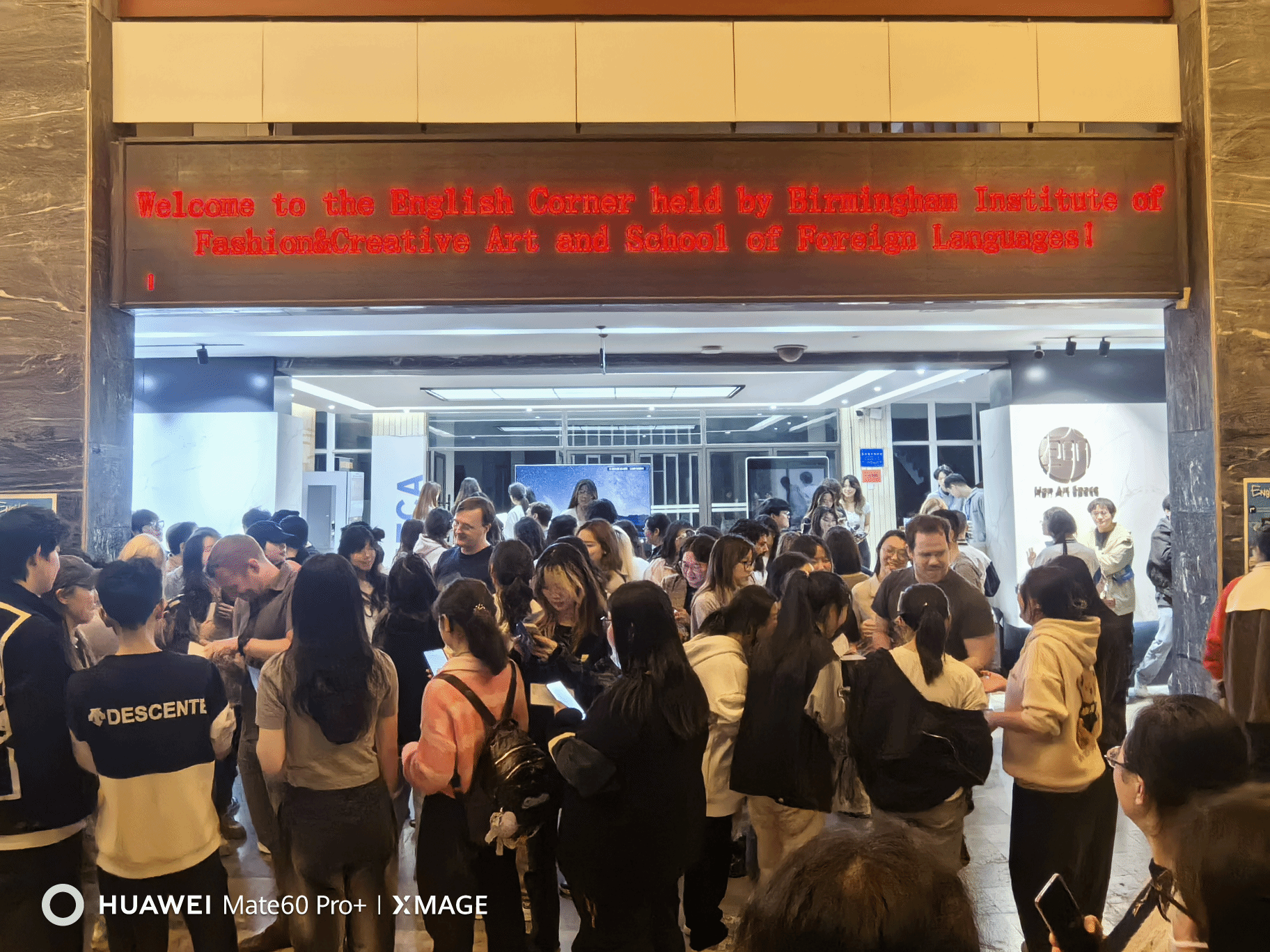 与伯明翰时尚创意学院联合举办的外语文化节南湖校区“英语角”在尚美楼中庭举行。成人文学