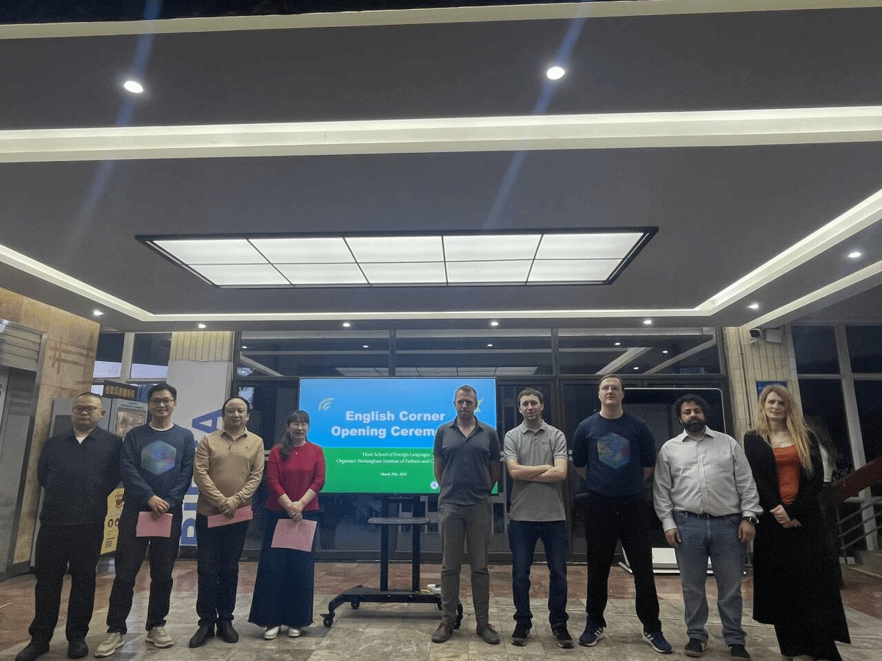 院长谭燕保、副院长罗绮伦、党委副书记彭阳慈航,伯明翰时尚创意学院党委副书记李斗明、伯明翰城市大学语言外教Jack、Ben、Joe,专业外教Kira、Tychonas,以及成人文学