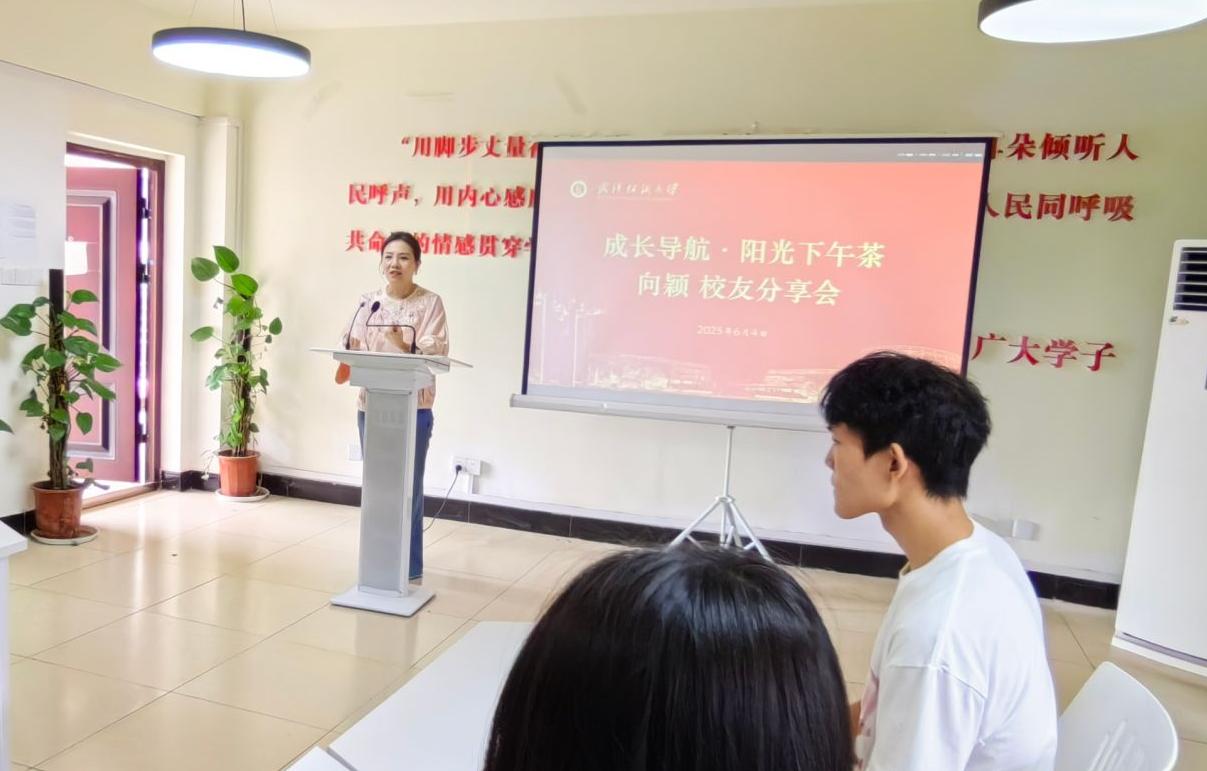 6 月 4 日中午 12:30,成人文学 在读 “习” 有声学生成长服务站开展“成长导航 阳光下午茶” 创业分享会。2005 级校友向颖重返母校,以自己丰富的创业经历和深刻的人生感悟,为学弟学妹们带来了一场充满智慧与力量的精神盛宴。